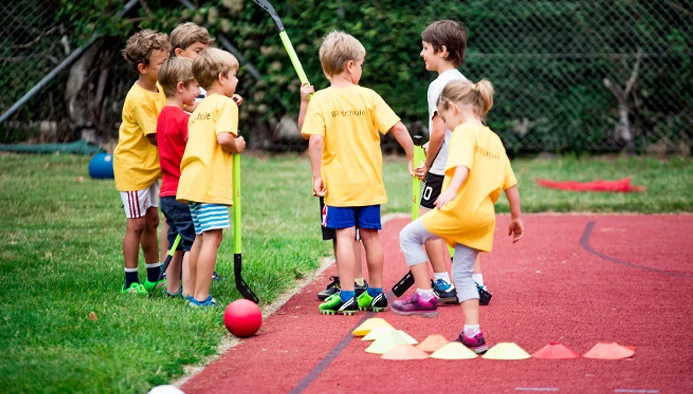 Im Kindergarten Camp (3 – 6 Jahre) lernen die Kleinsten an der sommerlichen Frischluft viele unterschiedliche Ballsportarten kennen…von Fußball, Basketball, Landhockey, Tennis bis hin zu Frisbee und abwechslungsreichen Abenteuerspielen ist die Liste unserer Möglichkeiten quasi unerschöpflich. Mit altersgerechten Übungen verbringen wir eine Woche voller Bewegung, Spaß & Action.