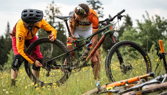 Unser Team besteht aus Harriet Rücknagel, mehrfache deutsche DH Meisterin, und Sabine Oswald, langjährige MTB-Trainerin, Rennveranstalterin und Trailbauerin. Sie stehen dir mit wertvollen Tipps und Tricks zur Seite und bieten Workshops zu Themen wie Schrauben, Sicherheit, Video/Foto und mehr. Wir werden gemeinsam an deiner Fahrtechnik arbeiten, Endurorunden drehen und natürlich die besten Abfahrten genießen. Neben dem Biken gibt es auch jede Menge Sport, Schwimmbadspaß und Trailbauaktionen.