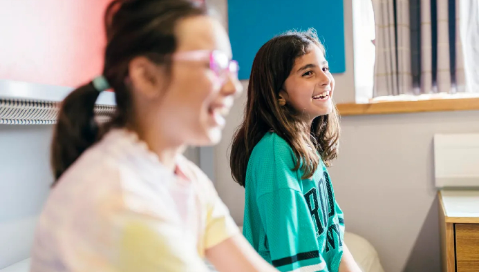 Du schläfst in einem Mehrbettzimmer, bekommst drei Mahlzeiten am Tag und hast einen festen Treffpunkt für die Fahrt zur Schule oder zu Aktivitäten.