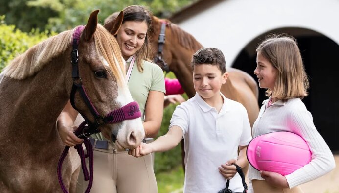 Der Reitschwerpunkt ist fest in den Wochenablauf integriert und wird vollständig auf Englisch durchgeführt.