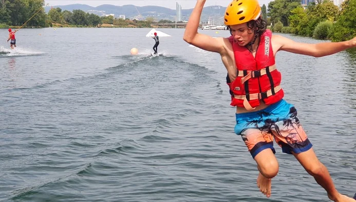 Im Fun- und Wassersportcamp in Wien erleben Jugendliche zwischen 12 und 17 Jahren eine sportliche Ferienwoche mit Wakeboard, Wasserski, SUP und Beachvolleyball – direkt an der Alten Donau und ganz ohne Übernachtung.