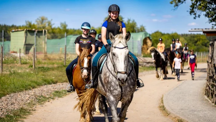 - Reiten auf geduldigen und liebenswerten Schulpferden/-ponys auf dem Reitplatz, im Reitzelt und Ausritte in die schöne Natur