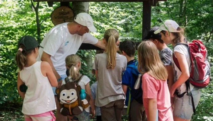 Dienstag bis Donnerstag sieht ganz ähnlich aus: ab 8:30 ist jemand da, der mit den Kindern spielt und den Naturpark entdeckt, bevor es nach einem kurzen Aufwärmen in die verschiedenen Gruppen geht. Nach der Mittagspause gibt es unterschiedliches Programm mit der ganzen Gruppe! Am Freitag bereiten wir uns für den Nachmittag vor, denn bei einem Stationenbetrieb, betreut durch die Kinder, dürfen die Eltern auch aktiv werden und erleben, was die Kinder über die Woche gemacht haben!