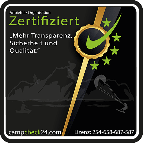 - Veranstalter, die bei campcheck24 gelistet sind, dürfen das Siegel auch auf ihren eigenen Websites verwenden. Das Logo ist mit unserer offiziellen Lizenzprüfseite verlinkt, damit du jederzeit sicher bist, dass das Siegel echt ist.